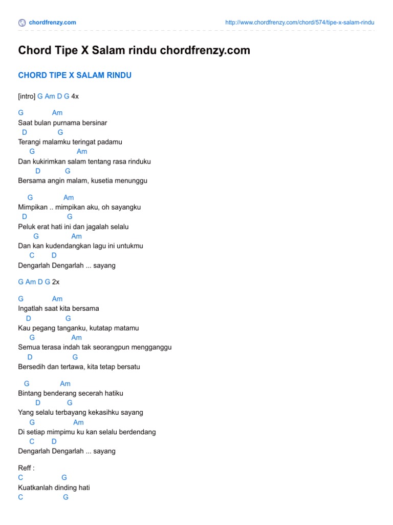 Chord angin rindu. Am Em F C F G Am. Am Em Oh angin bisikan padanya F C Ku cinta dia F G C Takkan ada yang lain. Ku harap dirinya dapat mendengarnya.