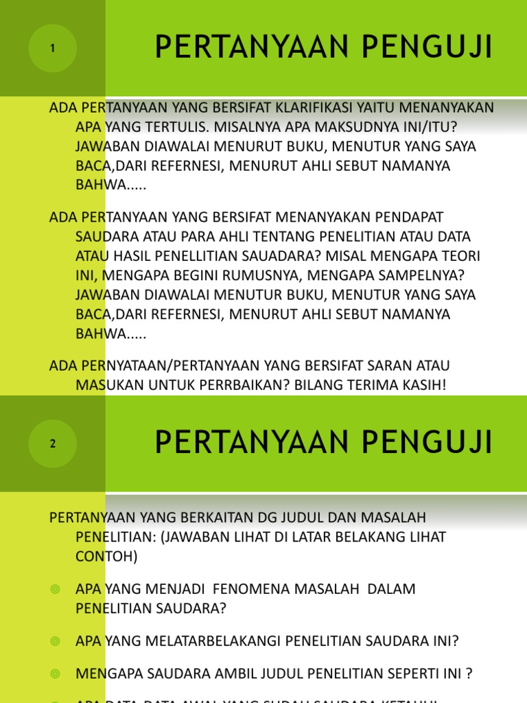 Pertanyaan Penguji Sidang Ujian Skripsi I